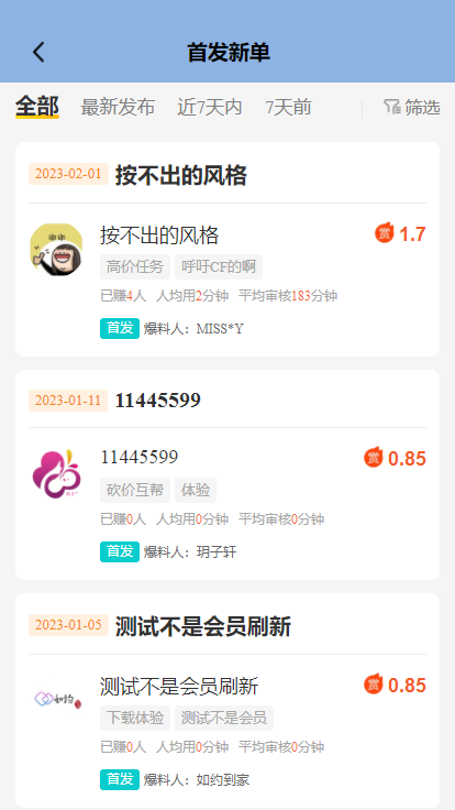首发新单都是商家发掘最新的任务,各种各样大家就不怕没有任务做啦!