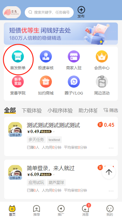 在赏善任务的首页看到很多的做单专区入口,下面分别给大家介绍一下几大专区,大家可以从中选择自己感兴趣的任务来做。